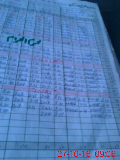 | CNIC | Full Name | Designation | R/C | Absence During Last Calender Month |