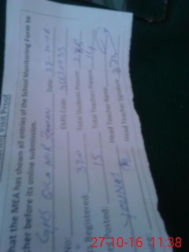 | Attendance Register | Head Teacher | MEA with School | Visit Proof |