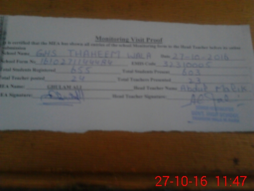 | EMIS Code: 32310005 | Name of School: GHS THAHEEM WALA | |||