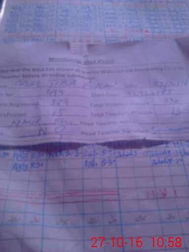 | Attendance Register | Head Teacher | MEA with School | Visit Proof |