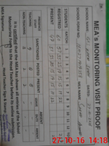 | Certified that this School was Inspected by the Undersigned MEA/DMO Today and the Information Stated Above is as Per Record. | |||||