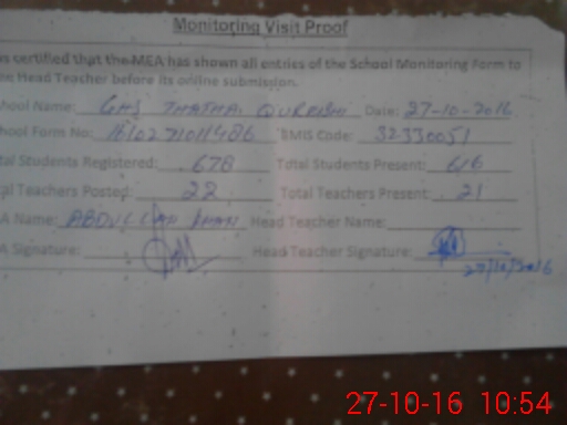 | EMIS Code: 32330051 | Name of School: GHS THATTA QURESHI | |||