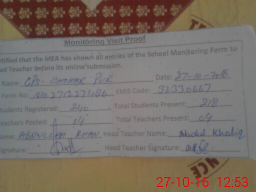 | EMIS Code: 32330667 | Name of School: GPS CHOHAR PUR | |||