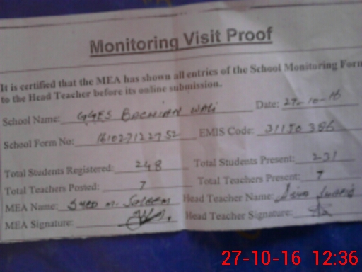 | Attendance Register | Head Teacher | MEA with School | Visit Proof |