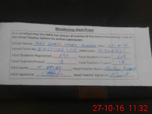 | EMIS Code: 32320021 | Name of School: GHS SHADI KHAN MUNDA | |||