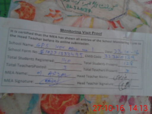 | EMIS Code: 32320139 | Name of School: GPS KOT ADU NO. 1 | |||