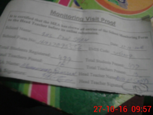 | Attendance Register | Head Teacher | MEA with School | Visit Proof |