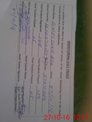 | Attendance Register | Head Teacher | MEA with School | Visit Proof |