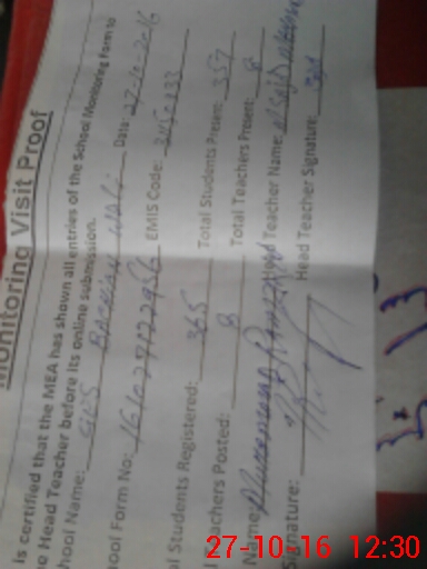 | Certified that this School was Inspected by the Undersigned MEA/DMO Today and the Information Stated Above is as Per Record. | |||||