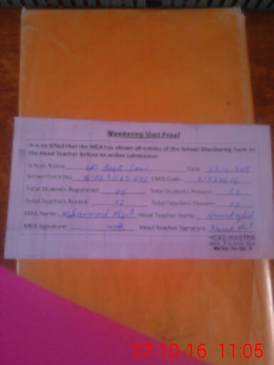 | Certified that this School was Inspected by the Undersigned MEA/DMO Today and the Information Stated Above is as Per Record. | |||||