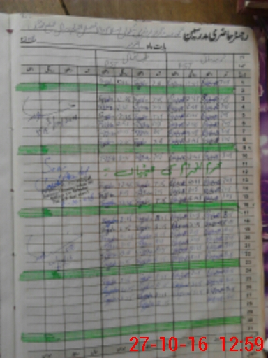 | CNIC | Full Name | Designation | R/C | Absence During Last Calender Month |