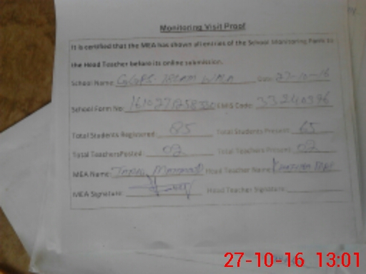 | Attendance Register | Head Teacher | MEA with School | Visit Proof |