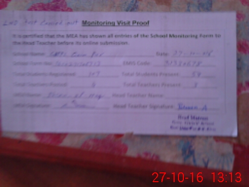 | Attendance Register | Head Teacher | MEA with School | Visit Proof |