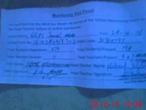 | Attendance Register | Head Teacher | MEA with School | Visit Proof |
