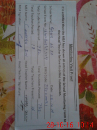 | Certified that this School was Inspected by the Undersigned MEA/DMO Today and the Information Stated Above is as Per Record. | |||||