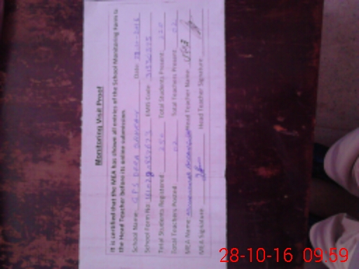 | Monitoring Date: 28-10-2016 | Start Time: 28-10-2016 09:20 AM | End Time: 28-10-2016 10:02 AM | Name of MEA: Mu**** Ak**** | |