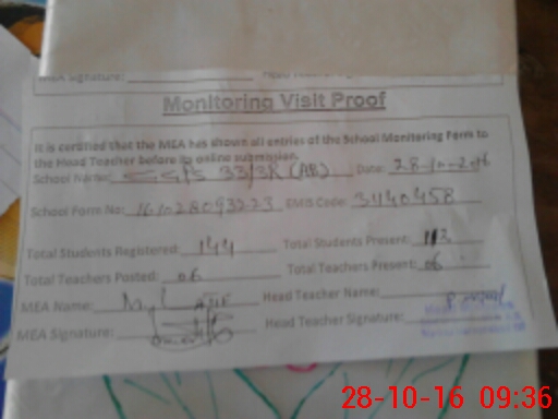 | Attendance Register | Head Teacher | MEA with School | Visit Proof |