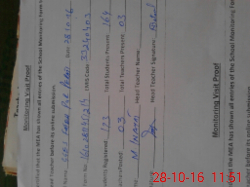 | Certified that this School was Inspected by the Undersigned MEA/DMO Today and the Information Stated Above is as Per Record. | |||||