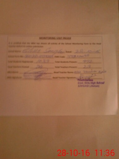 | Certified that this School was Inspected by the Undersigned MEA/DMO Today and the Information Stated Above is as Per Record. | |||||