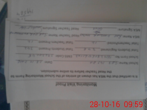 | Monitoring Date: 28-10-2016 | Start Time: 28-10-2016 08:56 AM | End Time: 28-10-2016 10:00 AM | Name of MEA: Kh**** Ha**** (R**** | |