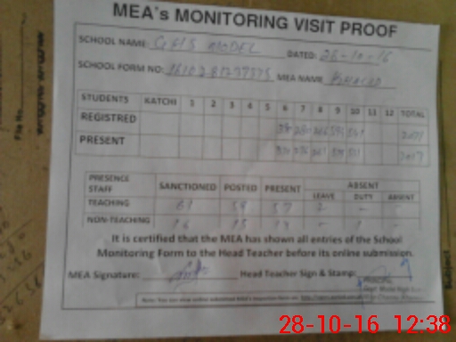 | Certified that this School was Inspected by the Undersigned MEA/DMO Today and the Information Stated Above is as Per Record. | |||||