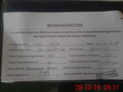 | Certified that this School was Inspected by the Undersigned MEA/DMO Today and the Information Stated Above is as Per Record. | |||||