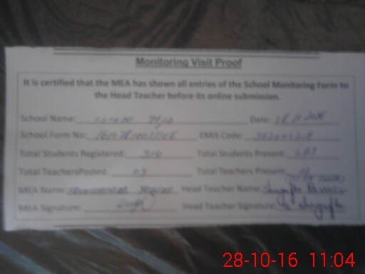 | Certified that this School was Inspected by the Undersigned MEA/DMO Today and the Information Stated Above is as Per Record. | |||||