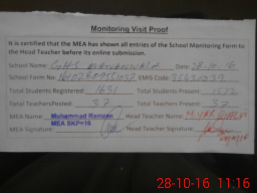 | Certified that this School was Inspected by the Undersigned MEA/DMO Today and the Information Stated Above is as Per Record. | |||||
