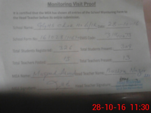 | EMIS Code: 31140073 | Name of School: GGHS CHAK NO 6/1-R | |||