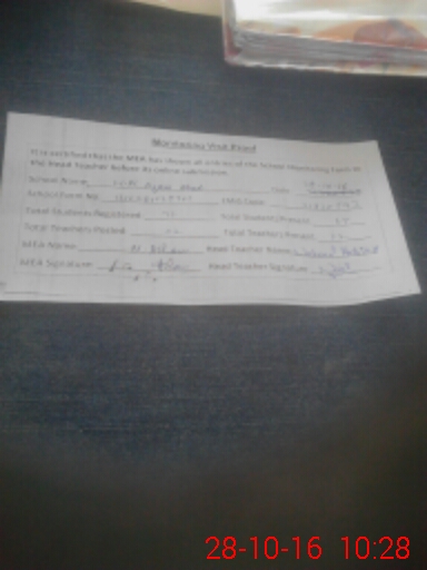 | Attendance Register | Head Teacher | MEA with School | Visit Proof |