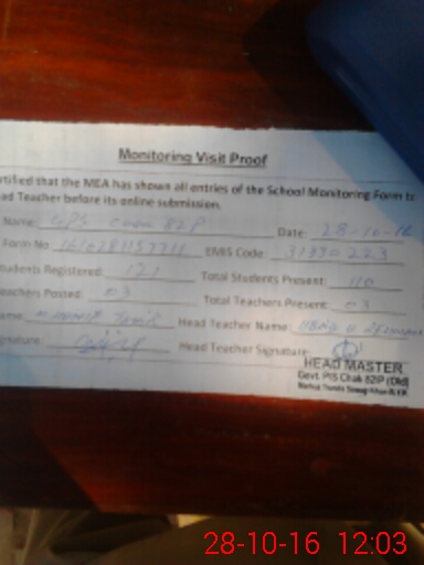 | EMIS Code: 31330223 | Name of School: GPS CHAK NO. 82/P | |||