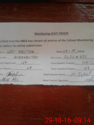 | EMIS Code: 32320271 | Name of School: GPS CHAK NO.581 TDA | |||