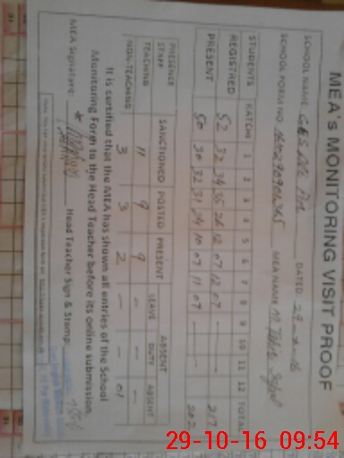 | Monitoring Date: 29-10-2016 | Start Time: 29-10-2016 09:01 AM | End Time: 29-10-2016 09:54 AM | Name of MEA: M.Ta**** Iq**** (S**** | |