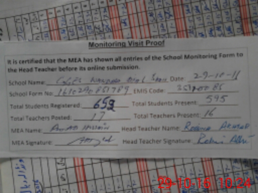 | Certified that this School was Inspected by the Undersigned MEA/DMO Today and the Information Stated Above is as Per Record. | |||||