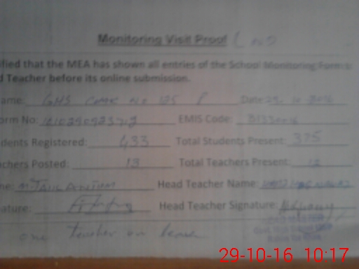 | Attendance Register | Head Teacher | MEA with School | Visit Proof |