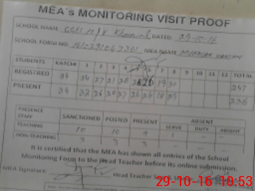 | Attendance Register | Head Teacher | MEA with School | Visit Proof |