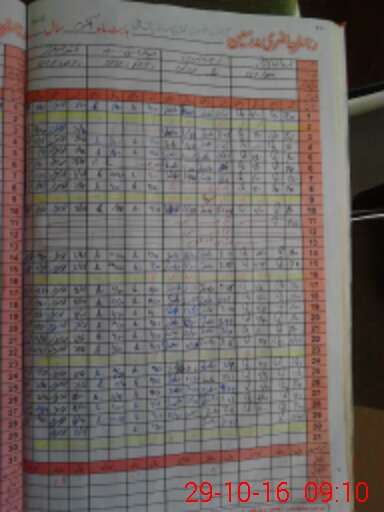 | CNIC | Full Name | Designation | R/C | Absence During Last Calender Month |