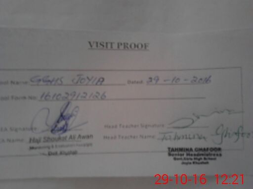 | EMIS Code: 38210930 | Name of School: GGHS JOYIA | |||