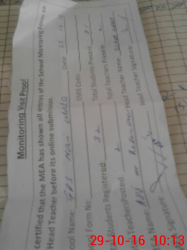 | Attendance Register | Head Teacher | MEA with School | Visit Proof |