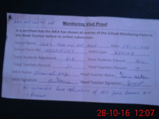 | Certified that this School was Inspected by the Undersigned MEA/DMO Today and the Information Stated Above is as Per Record. | |||||