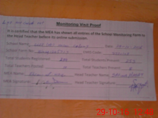 | Certified that this School was Inspected by the Undersigned MEA/DMO Today and the Information Stated Above is as Per Record. | |||||