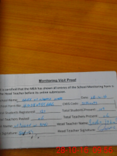 | Attendance Register | Head Teacher | MEA with School | Visit Proof |