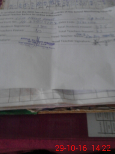 | Attendance Register | Head Teacher | MEA with School | Visit Proof |