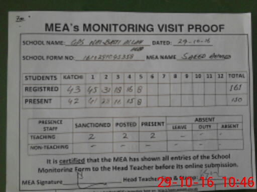 | Certified that this School was Inspected by the Undersigned MEA/DMO Today and the Information Stated Above is as Per Record. | |||||