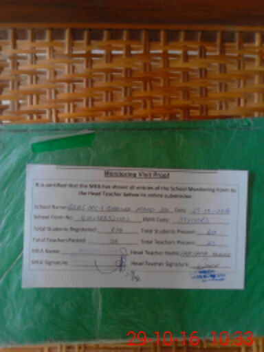 | Certified that this School was Inspected by the Undersigned MEA/DMO Today and the Information Stated Above is as Per Record. | |||||