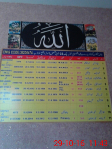 | EMIS Code: 38230474 | Name of School: GES DOST MUHAMMAD CHAK NO. 22 MB | |||