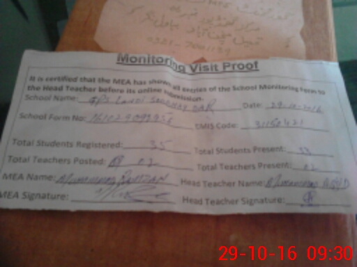 | EMIS Code: 31150421 | Name of School: GPS LANDI SOOBHAY DAR | |||