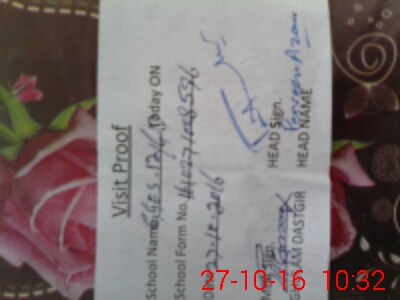 | School Visited by School Health & Nutrition Supervisor (No. of Visits) | Name1: | Aamar Shahzad | Name2: | ||
