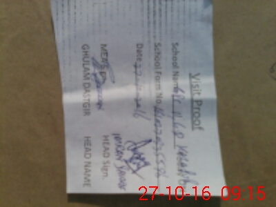 | Attendance Register | Head Teacher | MEA with School | Visit Proof |