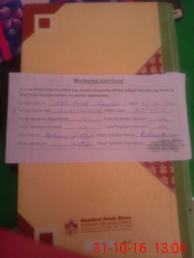 | Certified that this School was Inspected by the Undersigned MEA/DMO Today and the Information Stated Above is as Per Record. | |||||
